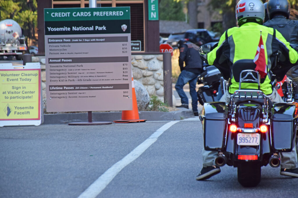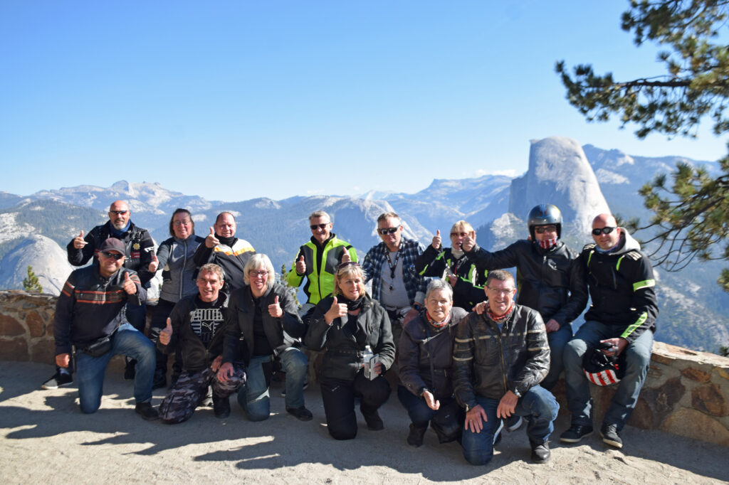 Vi cruiser en tur rundt og ser parken – og hvis tiden tillader det, vil vi køre hele vejen til Glacier Point, der ligger 975 meter over bunden af Yosemite Valley, i 2.200 meters højde. Det er en kæmpe oplevelse at køre turen på en motorcykel og mærke vinden i ansigtet.